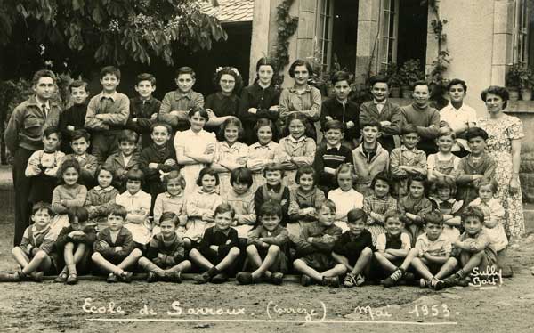 Mais dès lors , leur enracinement commence . André Rigal va se voir confier la tâche de secrétaire de mairie , ce qui aura pour effet de le placer en prise directe avec la vie de la commune . A cette époque , les enseignants dont la stabilité de poste est assurée , se voient généralement attribuer cette fonction qui n’est pas de tout repos , loin s’en faut ! André Rigal me confie que le premier « accroc » qu’il aura , ce sera avec ….le curé de la paroisse de Monestier-Port-Dieu . Ce dernier , au cours d’une visite à l’école , lui fera constater que les classes « géminées » - il s’agit de classes filles et garçons – ne sont pas tolérables , ce qu’il va signaler au maire de la commune . Assertion à laquelle le jeune instituteur répond avec aplomb « qu’il en fera autant de son côté !» Bien entendu , les choses en restèrent là , filles et garçons continuèrent à cohabiter comme auparavant . Mais il est vrai qu’en ce temps , de nombreux établissements scolaires avaient leurs classes respectives filles ou garçons , à Sarroux , comme auparavant à St Julien près Bort , on dérogeait à cette règle.