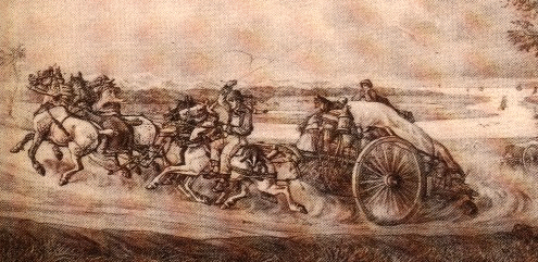 Les différentes sociétés se font donc concurrence et se livrent à des défis pour être les premières à livrer la marchandise à Paris (300km), à l’époque le moyen de locomotion le plus rapide était le cheval, principalement de race “trait boulonnais”, des animaux robustes attelés en équipage de 5 pour un fourgon, changés toutes les 7 lieues (28km).