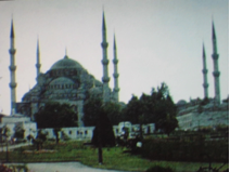 La mosquée du sultan Ahmet (1609-1616) possède 6 minarets à 2 ou 3 balcons , soutenus par des encorbellements de stalactites . La cour à portiques à 26 colonnes de granit supportant les coupoles des 4 galeries . Le Sardivan : Fontaine aux ablutions .