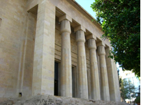 Les six colonnes furent très admirées de Lamartine , ainsi que les trois fameuses pierres de la terrasse ( chacune mesure 20m par 4,50m par 3,60m : la légende populaire a évoqué des géants , des êtres venus d’autres planètes pour mettre en place ces blocs).