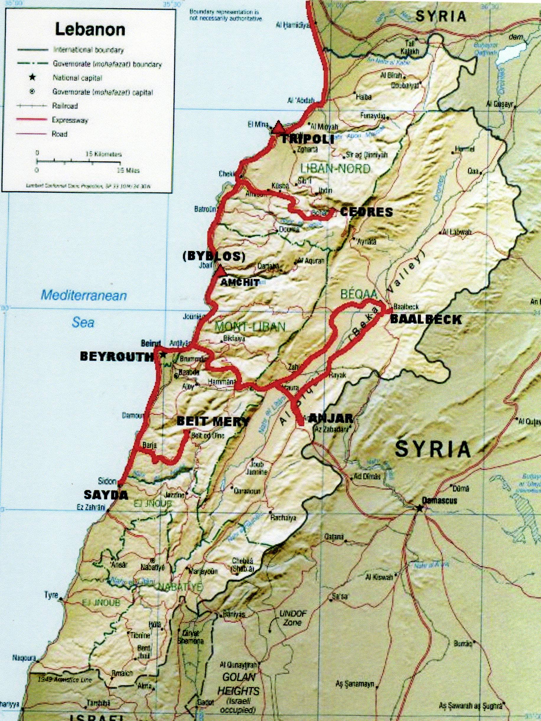 En quittant la mosquée , nous voyons une R16 de Libanais et leur demandons s’il nous sera possible de traverser les frontières (Syrienne et Libanaise ) . Le Libanais distingué et chauve , à l’accent français irréprochable , nous affirme que « pour nous » tout est normal , grâce à De Gaulle , et c’est le début des « Vive De Gaulle » qui nous accompagneront durant tout notre voyage au Liban .