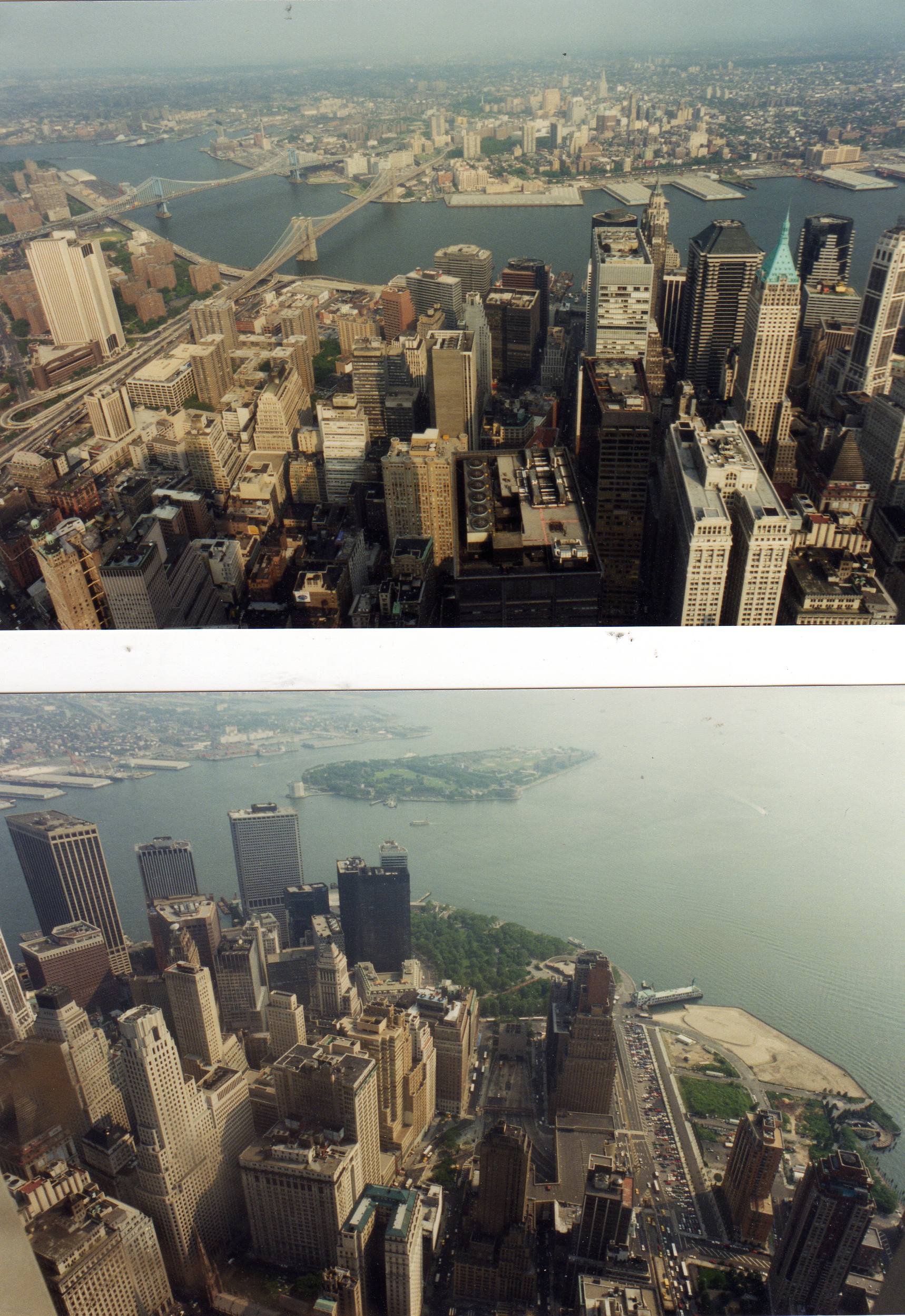 La salle panoramique permettait non seulement de voir New York aux quatre points cardinaux mais aussi grâce à un léger surplomb d’avoir une vue vertigineuse vers le pied des tours .J’étais tellement enthousiaste que j’ai photographié tout azimut .