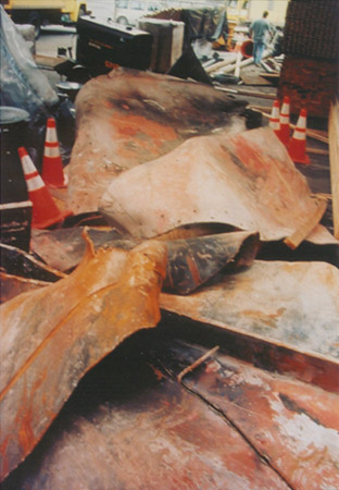une sculpture de Calder : « Bent Propeller » . Elle fut écrasée par la chute des tours , et S.C ROWER , petit fils de Calder et directeur de la Calder Foundation , déclare qu’il a retrouvé 50% de la sculpture complètement tordue(voir photo ci-contre)