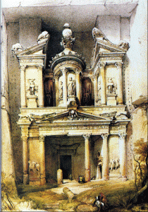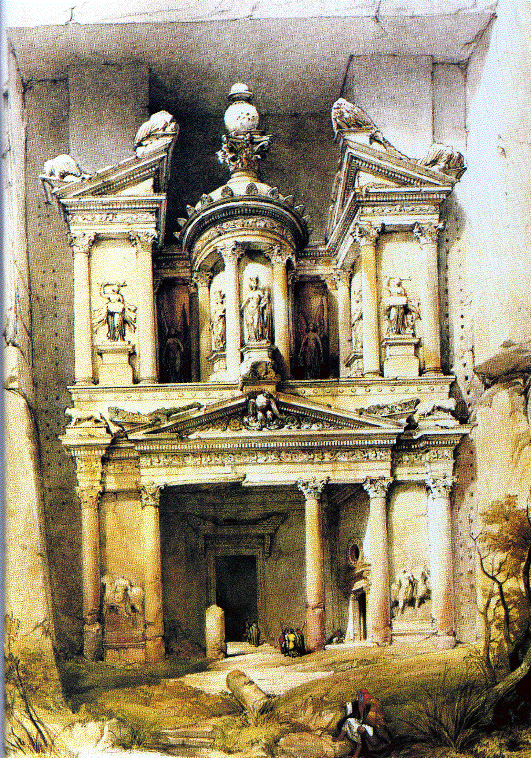 Le site de Pétra , situé à l’intersection de routes commerciales importantes , était une forteresse naturelle. C’est là que les Nabatéens ont établit leur capitale au premier siècle avant notre ère . Même si la plupart des monuments qu’on y a retrouvés à ce jour sont des tombes , Pétra n’était pas simplement une nécropole , mais une réelle cité , comportant des bâtiments publics , des marchés et un système d’aqueducs .