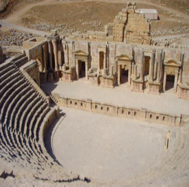 Nous passons devant ce qui reste du théâtre aménagé par le roi Aretas 4 qui pouvait accueillir 3000 spectateurs . Il fut en partie détruit par un tremblement de terre en 363 .