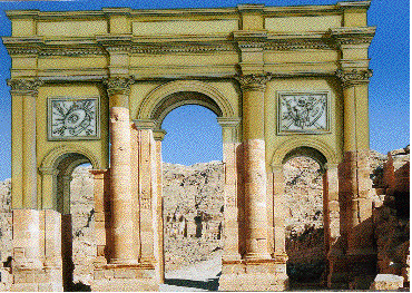 L’entrée du Sîq était surmontée d’une arche dont il ne reste plus que quelques traces sur un coté du canyon .