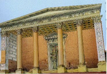 Puis nous arrivons à la porte du Temenos , magnifique ouvrage dont il ne reste que quelques colonnes tronquées : comme indiquées sur le montage ci-après :