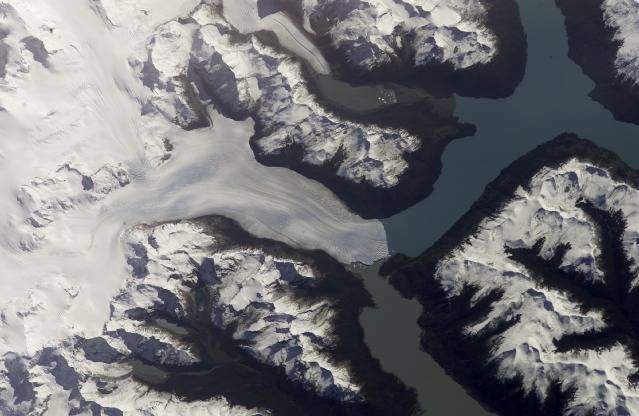 le glacier « coule » de la montagne , un peu comme la mer de glace dans les Alpes . Lui aussi avance dans le lac en générant des icebergs .