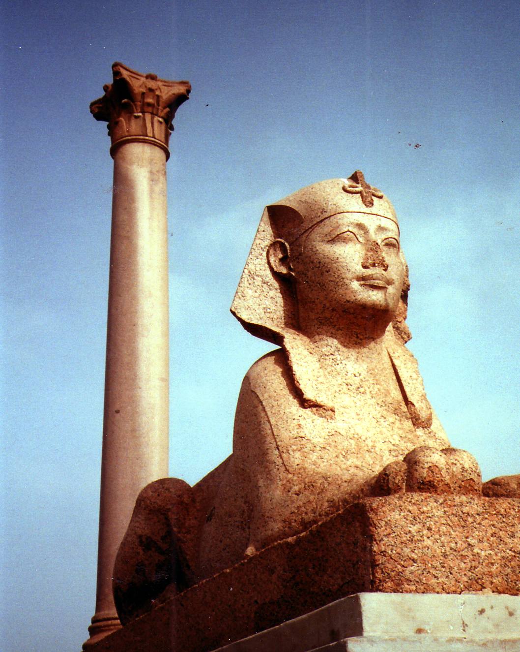 Sur le site près de la colonne , deux sphinx proviennent d’Héliopolis .