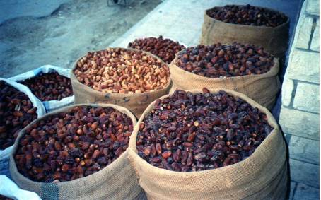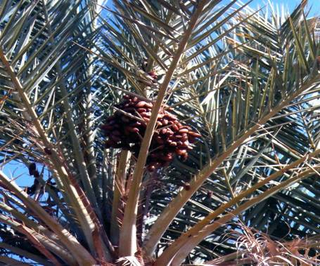 Nous nous promenons dans l’oasis luxuriante , avec ses 250000 palmiers dattiers avec une cinquantaines de variétés depuis le bas de gamme pour le bétail jusqu’à la grosse datte brillante et sucrée pour l’exportation .