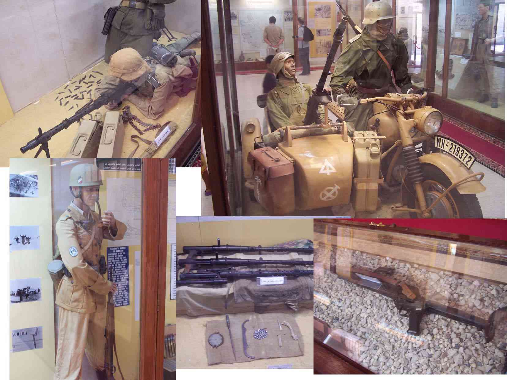 Inauguré en 1956 par Gamal Abd El-Nasser le Musée commémore la bataille d’El Alamein où les troupes de l’axe Allemandes et Italiennes furent stoppées dans leur marche vers Le Caire .
