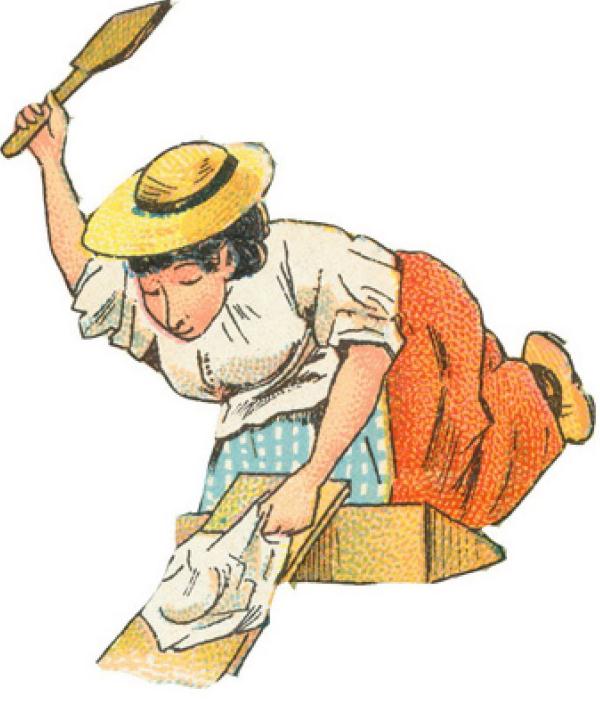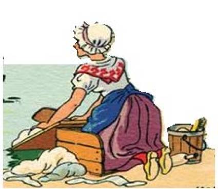 brosse de chiendent , le savon de marseilles et le litre d’eau de javel pour les taches récalcitrantes , et le battoir pour battre le linge !!
