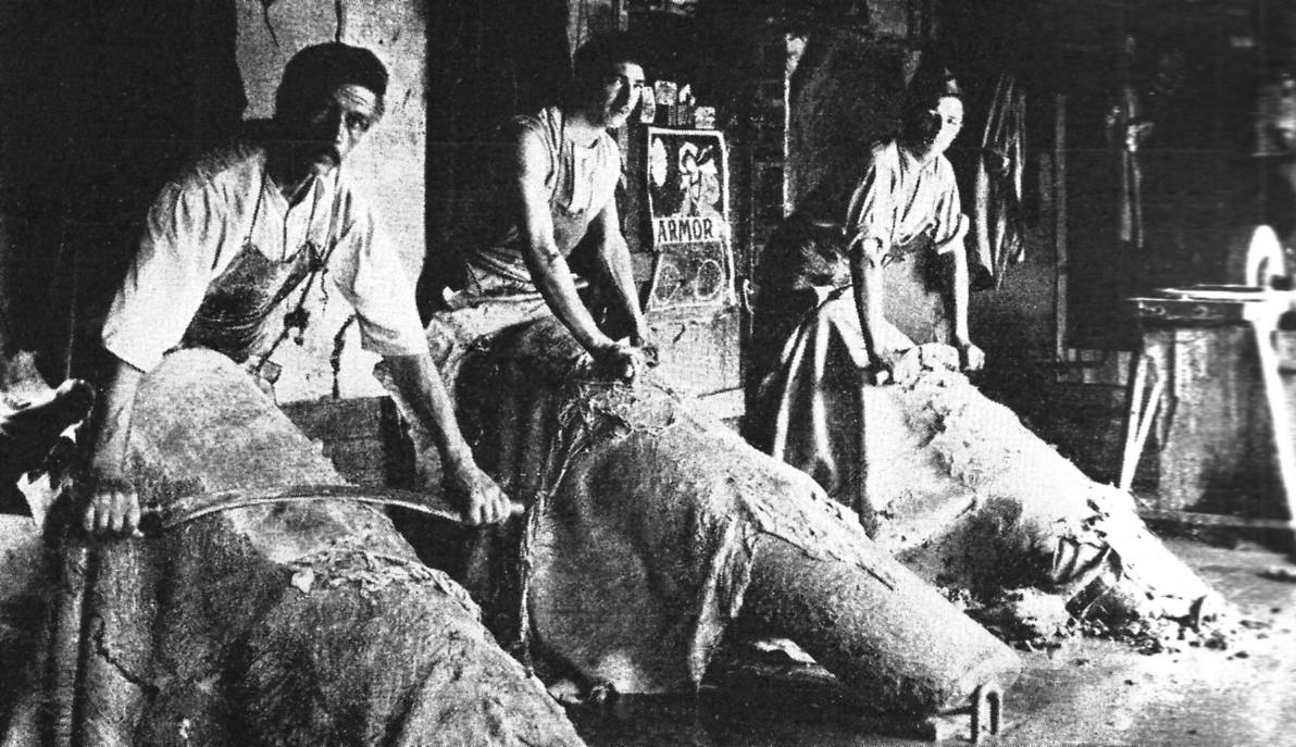 (écharnage des peaux dans une tannerie de Chateaurenault )