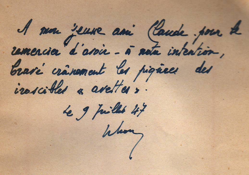 En 1942 la naissance de ma sœur Colette mit fin à mon statut de fils unique , mais mes dix ans d’avance m’ont toujours conféré un statut spécial dans la famille , surtout à l’évocation des fastes de l’avant-guerre : voiture à pédale , vacances au bord de la mer , séjour à Paris , repas au restaurant (je croyais qu’il était obligatoire de manger tout ce qui était servi dans l’assiette !).