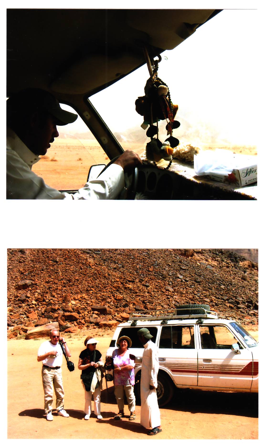 Mais revenons à la visite du WadiRum : La route goudronnée se termine à Rum , localité qui regroupe quelques constructions inesthétiques des Bédouins qui proposent des excursions en 4X4 ou à dromadaires . Nous choisissons un 4X4 poussif pour faire l’excursion la plus courte dans le désert .