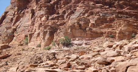 Nous regagnons notre 4X4 qui nous amène à Aïn Khazal , une faille étroite que l’on parcourt sur un sentier étroit …et acrobatique , des graffitis et des gravures sont visibles sur les parois .