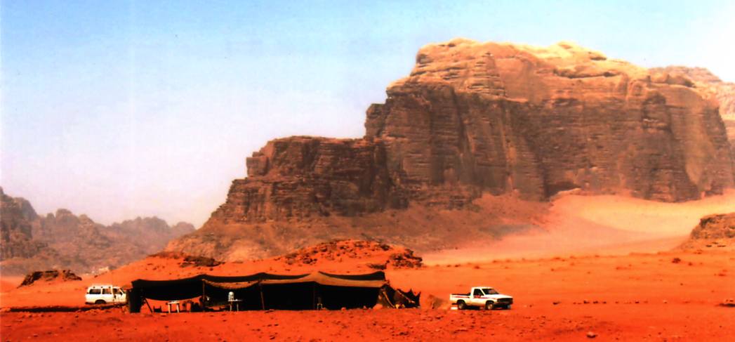 « Le désert du Wadi Rum est la plus ancienne strate géologique connue de l’écorce terrestre ! Se trouvant au sud de la Jordanie, à la frontière avec l’Arabie saoudite, à son extrémité sud-ouest, il plonge dans le golfe d’Aqaba, sur la mer Rouge. Contrairement à d’autres déserts de dunes, impressionnants par leur horizon lointain, le désert de Wadi Rum impressionne surtout par la verticalité de ses roches ! Ses djebels de grès variant du noir au jaune clair avec une prédominance de rouge se dressent à pic, ajoutant au sublime des lieux. Ces roches, comme plantées dans les dunes, ont jailli il y a environ 30 millions d’années et, depuis, ont subi le poids du temps et de l’érosion. Aujourd’hui, après des millénaires d’accidents tectoniques et de vent, elles sont creusées, polies et stratifiées et s’élèvent jusqu’à 1854 mètres d’altitude ! On comprend pourquoi ces paysages ont servi de décor à de nombreux films, dont Lawrence d’Arabie et Indiana Jones et la Dernière Croisade.
