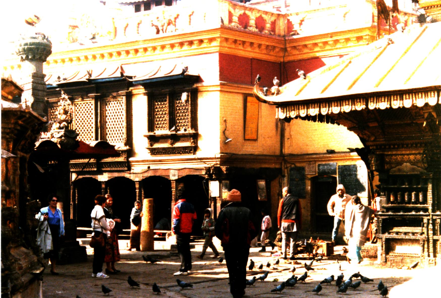 Sur ce site religieux co-existent une pagode Newar , un temple indou et un stupa Bouddhiste .