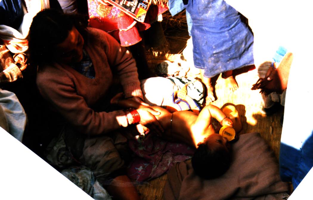 C’est dans un cirque de rizières que se trouve le village de Khokana, dans la vallée de la Bagmati, à quelques kilomètres de Patan. Loin de l’agitation de Katmandou, le village à gardé un cachet moyenâgeux avec son ensemble de maisons de briques et de ruelles. C’est un village bouddhiste Newar dans lequel on découvre une activité rurale inchangée depuis des siècles.Les maisons Newars présentent une façade de briques, dont les fenêtres sont entourées de poutrelles de bois plus ou moins décorées .Dans les rues , au soleil , les femmes massent longuement les nourrissons .