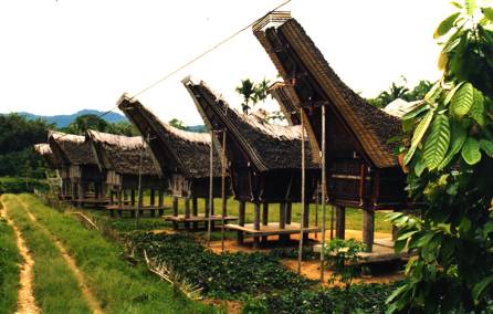 Enfin nous arrivons dans la région montagneuse de Tanatoraja : les habitants vivent dans de grandes batisses de bois en forme de selles