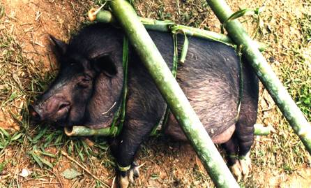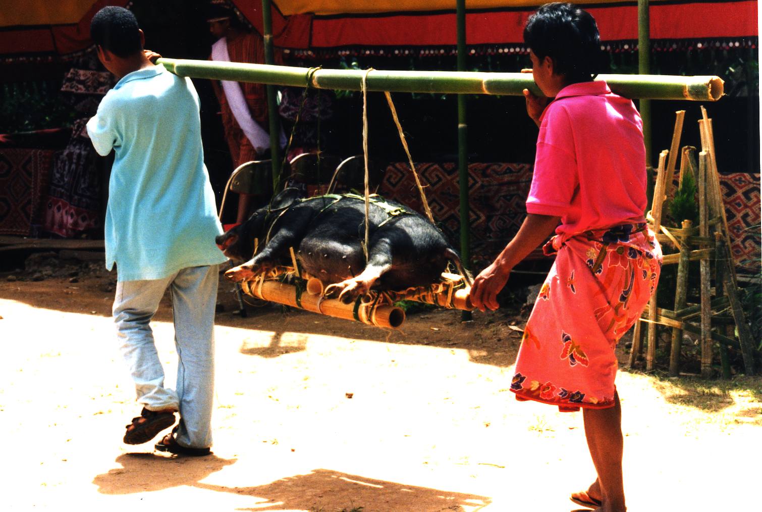 Les uns portent une perche ou est suspendu un porc vivant aux soies noires , les autres conduisent des buffles ….tout ces animaux seront sacrifiés pour permettre au défunt d’entreprendre son voyage vers l’au delà .