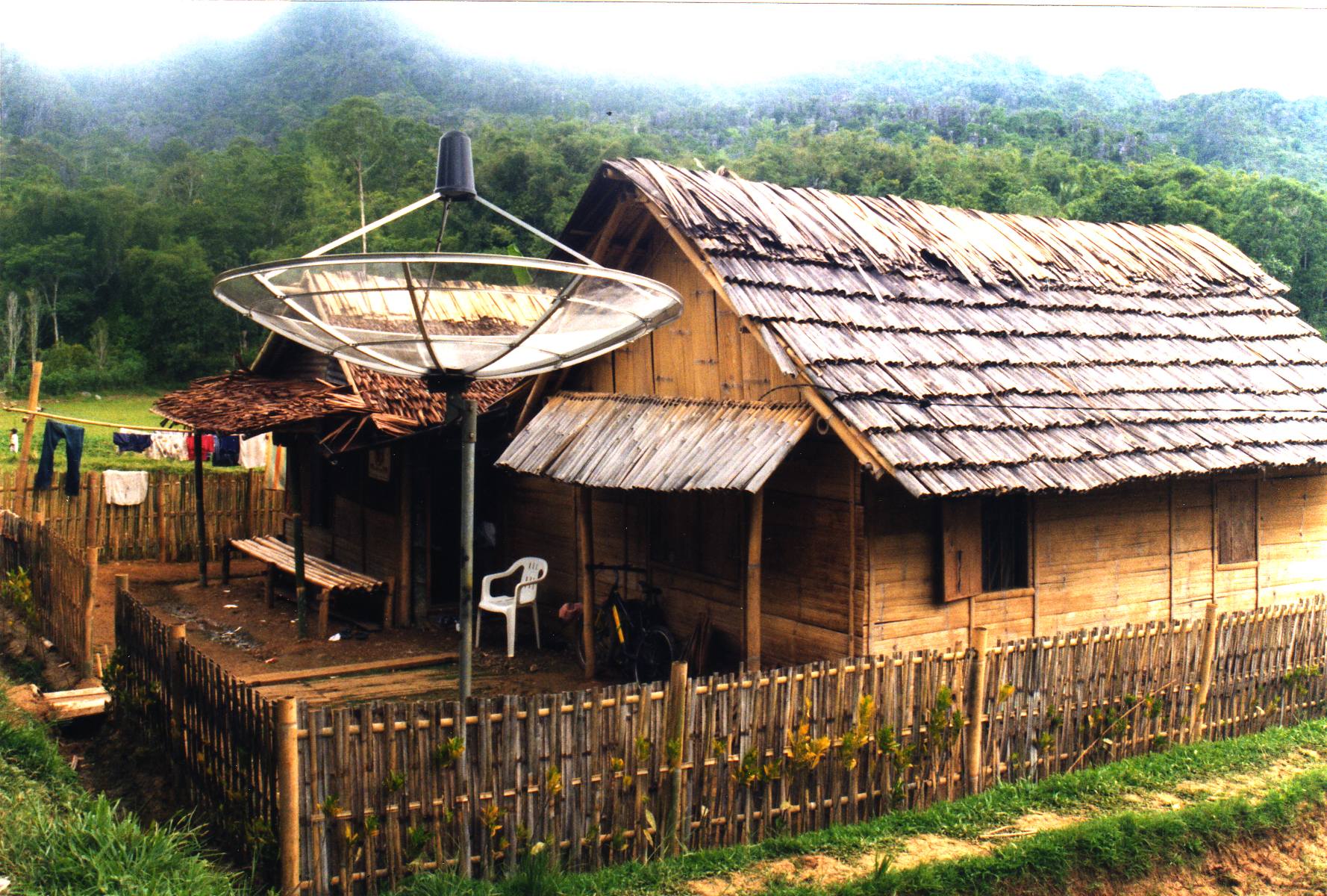 Nous reprenons la route et nous photographions une maison insolite mélangeant la tradition et le modernisme d’une énorme parabole de réception de télévision … nous réalisons que nous sommes sous l’équateur car la parabole est pointée au zénith !!!