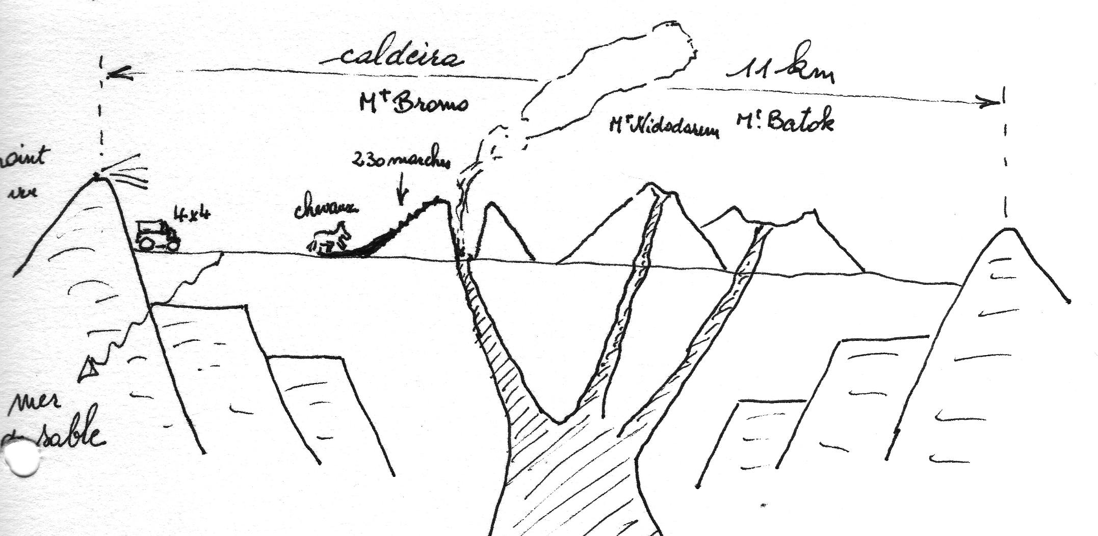 Nous quittons l’hôtel en 4X4 à 5 heures du matin pour nous rendre au sommet du mont Penajakan (2770m) afin d’assister au lever du soleil sul l’immense caldeira de 11 kilomètres de diamètre remplie de brume d’ou émergent trois volcans .