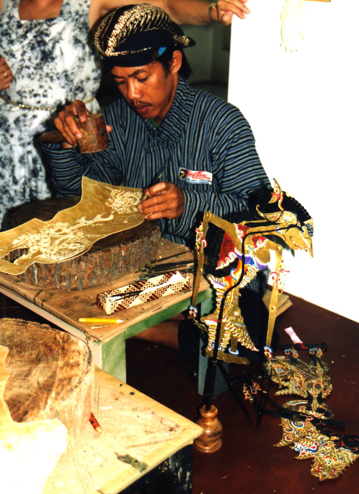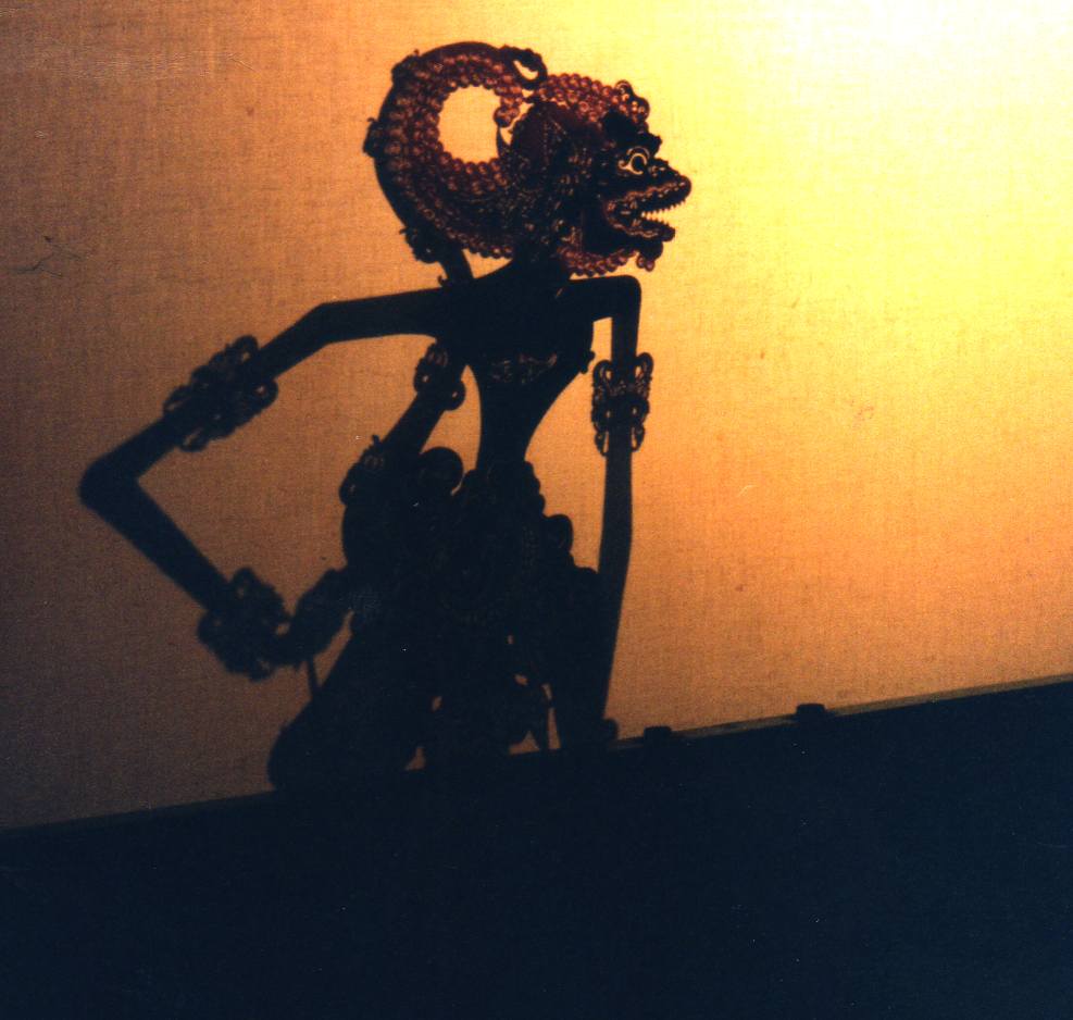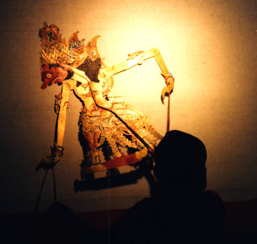 Les marionnettes , confectionnées en cuir de Buffle finement ciselé et peint sont maintenues par une tige de bambou et sont manipulée par le dalang derrière un drap et devant une lampe . Elle permettent d’illustrer les légendes indiennes issues du Mahâbhârata qui met en scêne la lutte entre le bien et le mal ainsi que le Râmâyana qui raconte le mariage du prince Râma avec Shita .