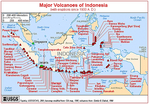 L’Indonésie est située à la convergence de la plaque pacifique , la plaque eurasienne et de la plaque australienne . Il en résulte une très forte activité volcanique et des tremblements de terre fréquents .