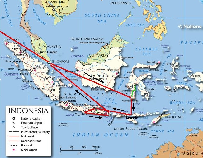 Mais pour atteindre l’Indonésie la route (aérienne) est longue :