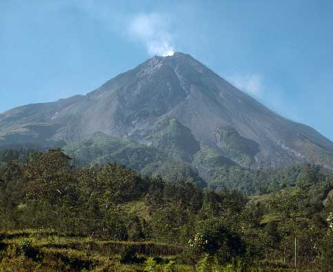 Nous apercevons au loin le volcan Merapi dont il ne faut pas s’approcher car ses eruptions sont terribles et imprévisible .