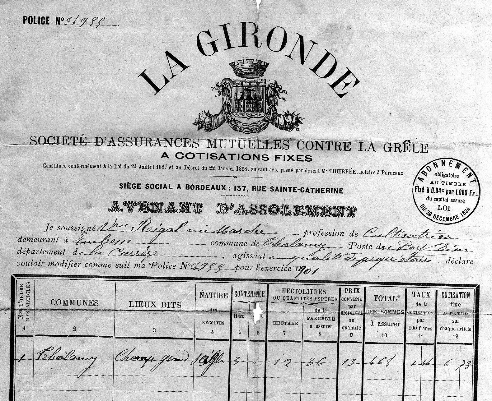 Julie Marche exploite la ferme comme le prouve cette assurance sur la récolte de seigle datant de 1901: