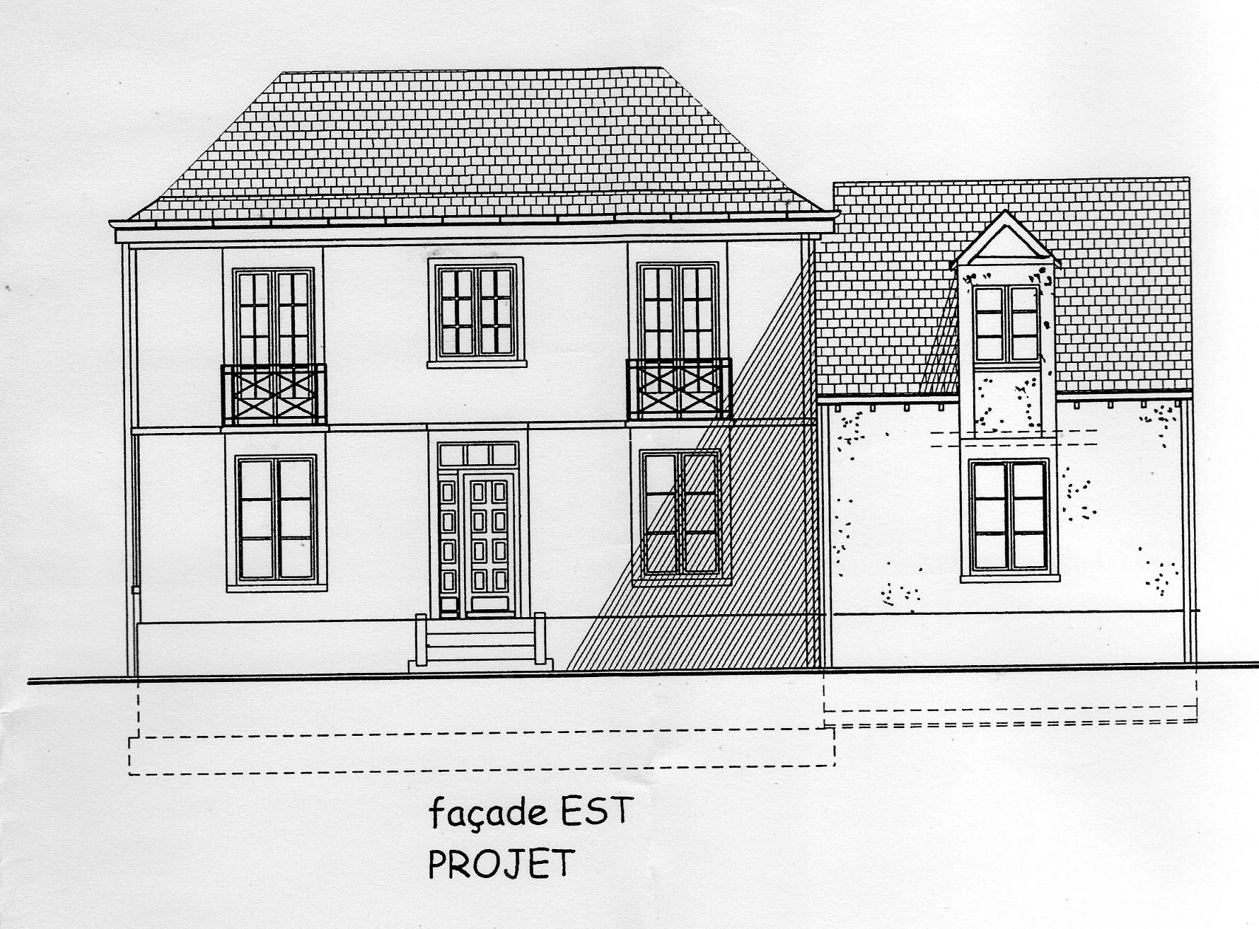Pour équilibrer le projet (en hauteur) on prévoit d’aménager des chambres sous le toit d’ardoises très pentu , à la tourangelle .