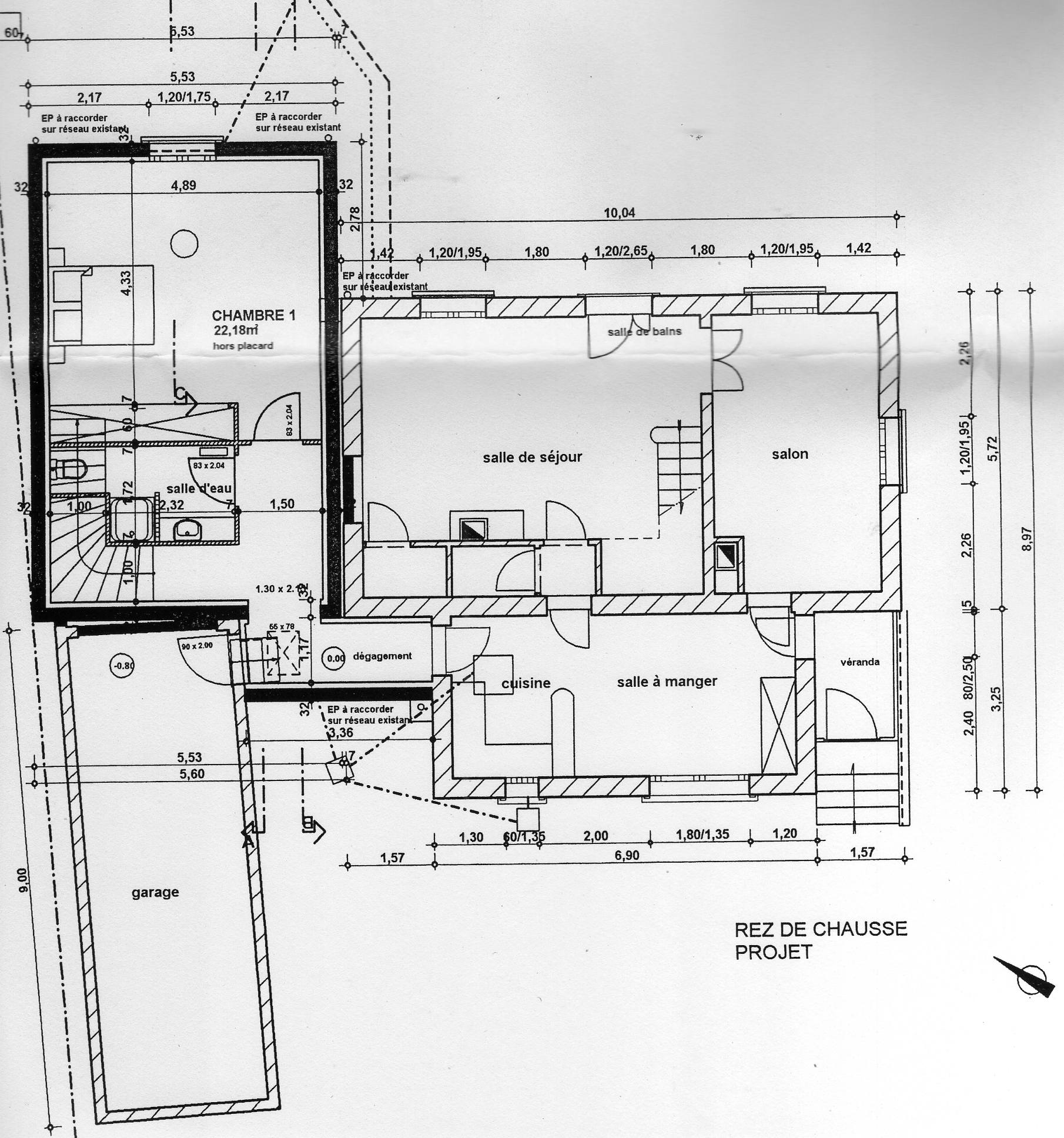 Et que faire du garage existant , bien mal placé à coté de la maison …du côté de l’extension !!