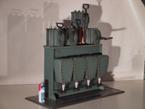 Sur la photo ci-contre , on voit les câbles qui amènent la moyenne tension dans des « boites d’extrémité » étanches , et au dessus les interrupteurs dans l’huile qui permettent les manœuvres de coupure ou de fermeture de la moyenne tension …en toute sécurité .