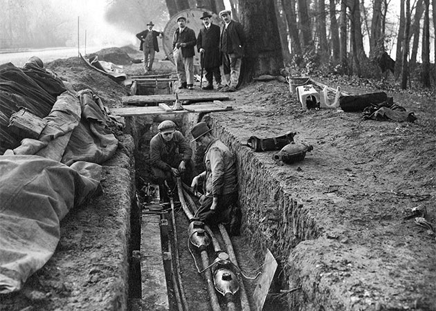 Le maillage des réseaux électriques passe progressivement du stade régional au stade interrégional. Moins de 7 000 communes étaient électrifiées en 1919, elles sont 36 528 en 1938.