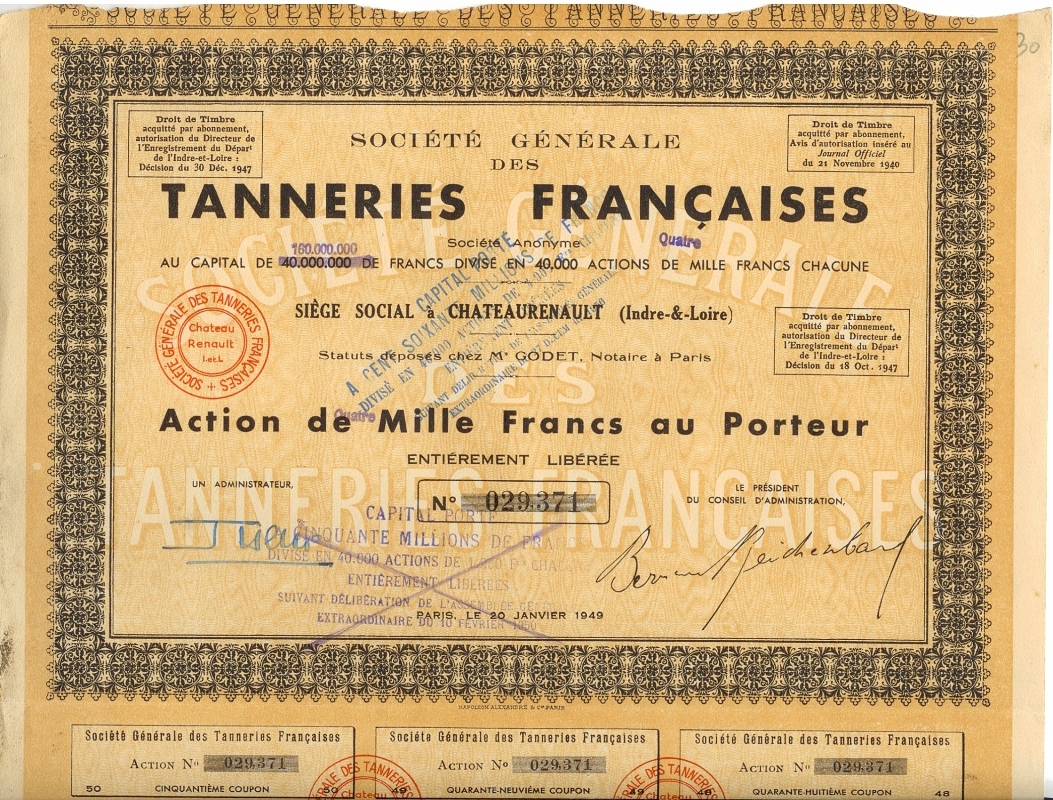 Pendant l’occupation allemande les tanneries de Chateaurenault doivent réduire leur activité de fabrication de cuir à semelle de 40% .