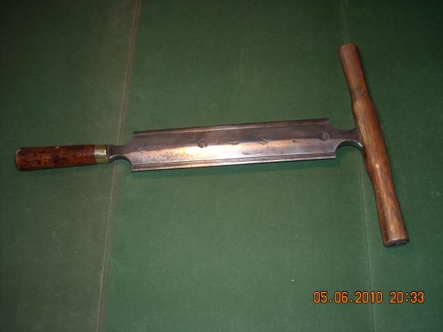 – LE BUTTAGE est effectué avec un couteau à deux manches muni d’une lame à deux tranchants, le “couteau à revers” qui sert à enlever les parties filamenteuses qui peuvent être encore recouvertes de tannée (résidu du tan, qui ne contient plus de tanin).
