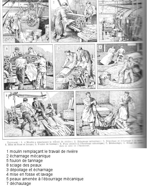 moderne, et utilisent les extraits. Dans ce cas, le tannage dure encore 9 mois, durée estimée nécessaire mais suffisante pour garantir un bon produit selon la définition donnée dans les statuts de l’Union des tanneurs de 1895.