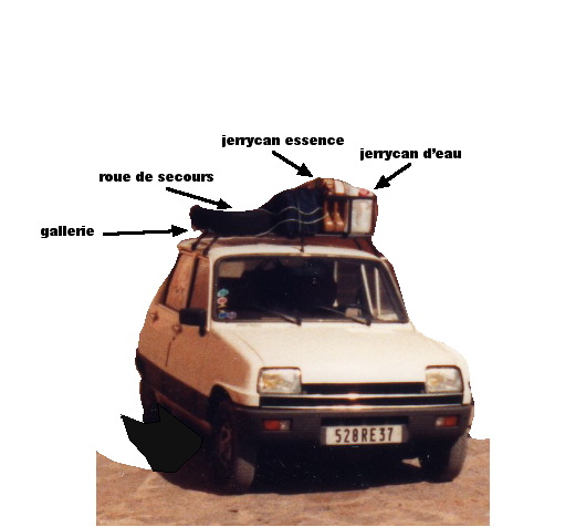 Etant habitué aux voyages au long cours …nous prévoyons deux roues de secours … un Jerrycan d’essence et quelques pièces détachées !!! il ne reste pas beaucoup de place (sur le toit ) pour les bagages .