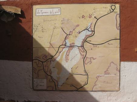 Il est superbement placé en bordure de la palmeraie luxuriante parcourue par des petites rigoles où l’eau coule en permanence .