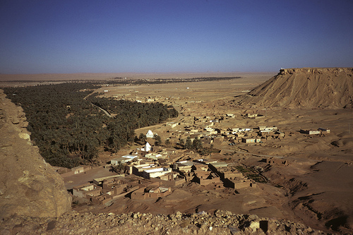 Enfin …au loin …une tache verte grandit…grandit …c’est l’oasis de Timimoun …l’oasis rouge ! nommée ainsi à cause de la couleur rouge des constructions du village .