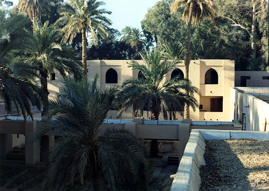 Nous arrivons à l’Hôtel El Bousten , magnifique réalisation de Fernand Pouillon dans la palmeraie .
