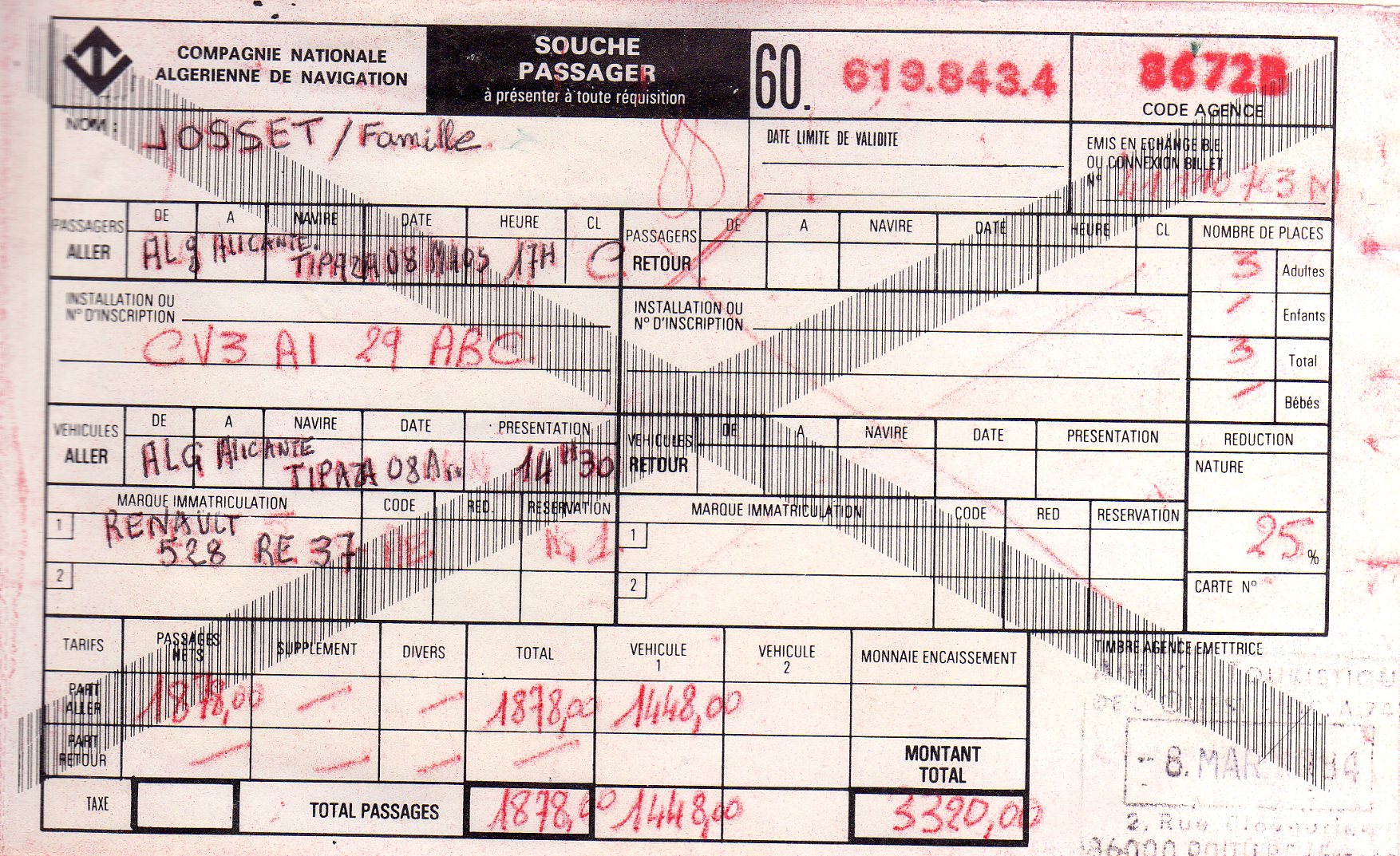 Et maintenant direction Alger pour prendre le bateau Alger-Alicante (la traversée la plus courte ) sur le bateau Tipaza .