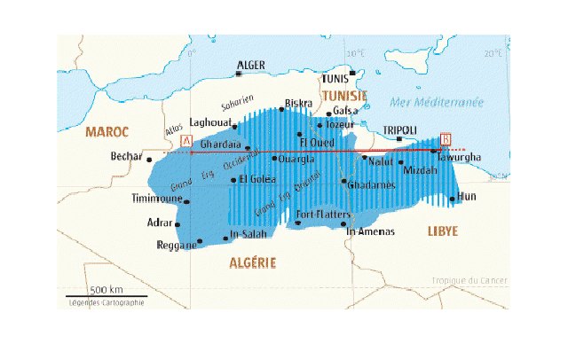 qu’une vaste contrée d’eau souterraine s’étend de Béchar, à Biskra en passant par Laghouat sur le versant sud de l’atlas saharien, allant jusqu’à l’extrême sud, à la limite de Reggane, In-Salah, In-Amenas et enjambant une bonne partie de la Libye et le sud de la Tunisie.