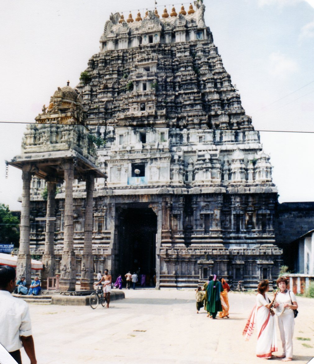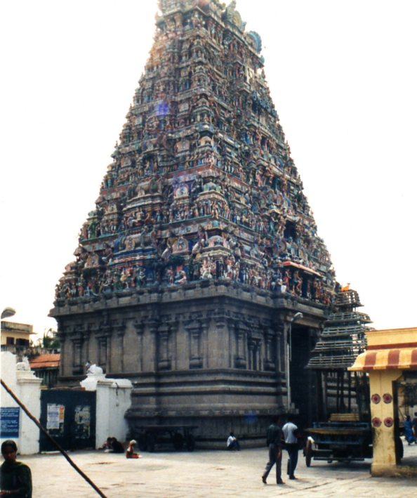 En arrivant à Kanchipuram « la ville d’or » nous apercevons , au loin , le plus haut Gopura (59 mètres) qui domine la ville .