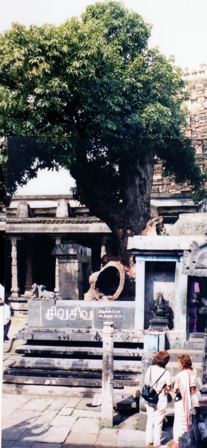 C’est sous cet arbre que dit-on Shiva apparut à Parvati. Cette légende explique le nom donné à Shiva « Ekambaranath », le Seigneur du Manguier. Si vous faites le tour du manguier, il faut le faire dans le sens des aiguilles d’une montre car l’inverse est considéré comme néfaste. Nous respectons le rite …. Pour continuer notre voyage sous la protection de Shiva !!