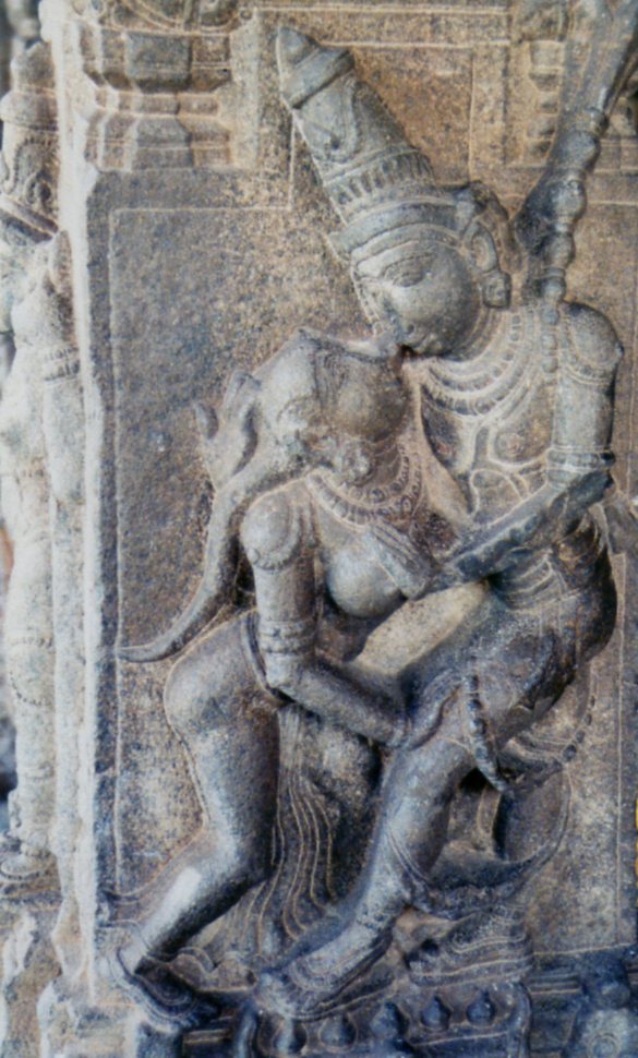 Sur un pilier nous découvrons Krishna en galante compagnie