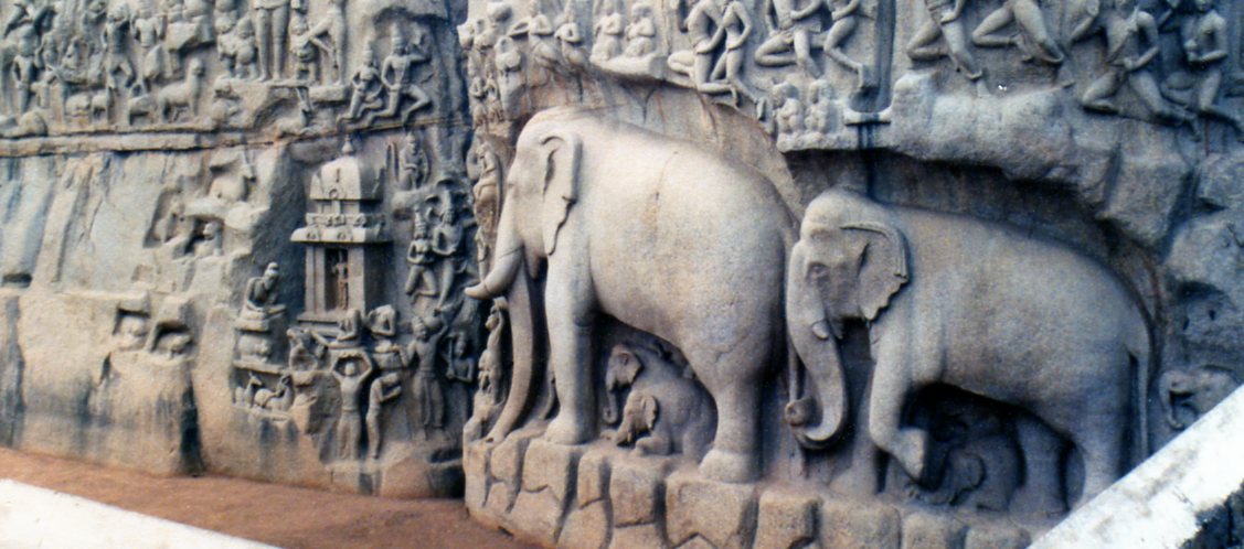 Le rocher est sculpté pour représenter un épisode du Mahabharata :Shiva canalise le Gange pour préserver la terre d’une destruction et sauver les divinités , les sages , les hommes , les animaux et un troupeau d’éléphants .@font-face { font-family: “Times New Roman”; }p.MsoNormal, li.MsoNormal, div.MsoNormal { margin: 0cm 0cm 0.0001pt; font-size: 12pt; font-family: “Times New Roman”; }a:link, span.MsoHyperlink { color: blue; text-decoration: underline; }a:visited, span.MsoHyperlinkFollowed { color: purple; text-decoration: underline; }p { margin-right: 0cm; margin-left: 0cm; font-size: 10pt; font-family: Times; }table.MsoNormalTable { font-size: 10pt; font-family: “Times New Roman”; }span.romain { }div.Section1 { page: Section1; }