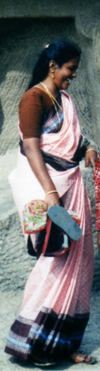 Le sari se porte sur un jupon et un corsage serré laissant le ventre nu. Il est fait d’une pièce, et il n’est habituellement porté que par les femmes mariées ).